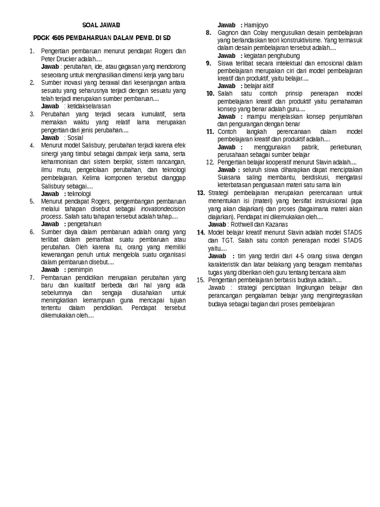 Soal Ujian Ut Pgsd Pdgk4502 Pengembangan Kurikulum Dan Pembelajaran D