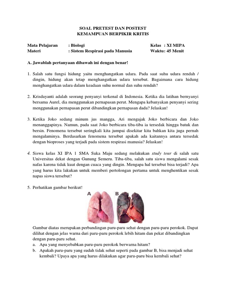Contoh Latihan Soal Ipa Biologi Materi Sistem Pernapasan Manusia