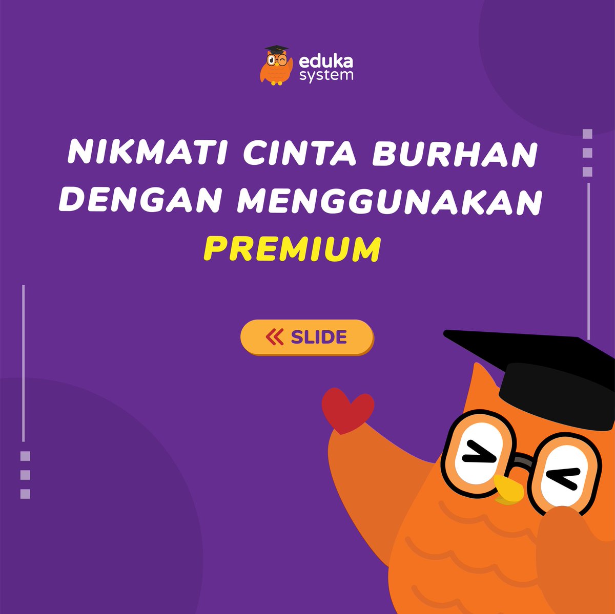 Soal Eduka System sangatlah menantang dan membuat saya lebih berpikir dalam menjawab suatu soal. Saya ingin berterima kasih terhadap Eduka sekali lagi salut untuk Buwhan. Media belajar berbasis teknologi yang terfokus pada kemampuan menjawab soal untuk persiapan ujianmu yang lebih baik.