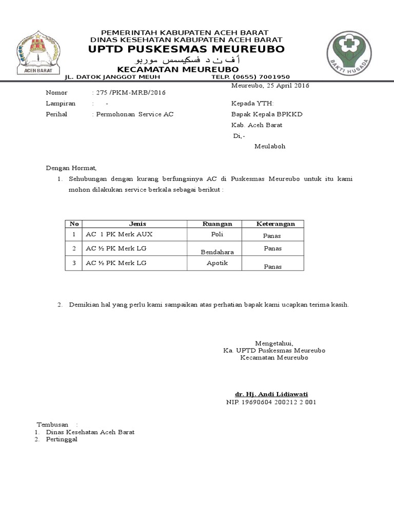 Contoh Surat Permintaan Service Ac Contoh Surat